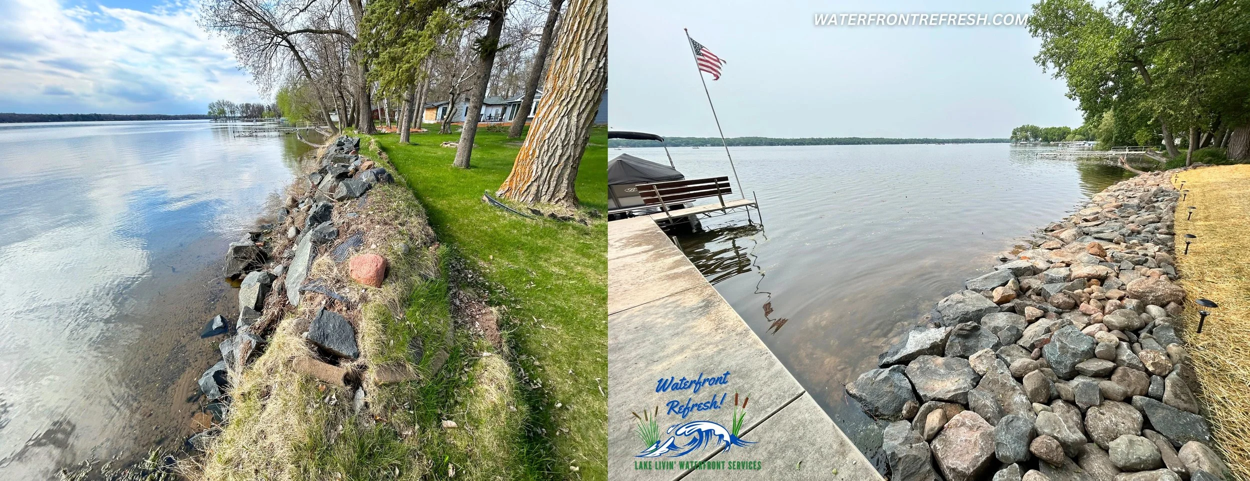 See our recent work (See photo attached): We are starting to use youtube to share our shoreline transformations so customers can see our processes step by step. Feel free to check out and follow our YouTube channel, Facebook page, and website, for more insight and inspiration for waterfront projects.